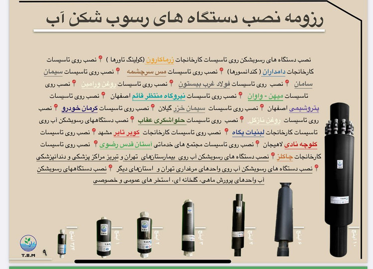 تنها تولید کننده و مخترع رسوبشکن آب ۱۲ سال توفیق تولید گسترده . مزایای نصب دستگاه رسوب شکن: جلوگیری از تشکیل رسوب و پاکسازی رسوبات قبلی پکیجافزایش طول عمر و بازدهی عالی تجهیزات : چيلرها،دیگهای بخار،بویلرها برجهاي خنك كننده،ایرواشرها تهویه مطبوع منابع كوئلي،کارواش مبدلهای حرارتی،شوفاژ،موتورخانه ابگرمکنهای خورشیدی پالایشگاههاوپتروشیمی شیرآلات ، هیدروجیم کندانسور،یونیت دندانپزشکی ممبرانها و. ضد ميكروب و باكتري و قارچ مصارف خانگي،استخر،پرورش ماهي،كشاورزي،مرغداري وصنعتي و. بدون نياز به برق و باطری ،گارانتی۵ساله تعویض،۳۰سال کارکرد مفیدو نصب آسان بدون هزينه فيلتراسيون و اپراتوري و پساب. از سایز(1/ 60 اینچ) همكاري با شما قطعاً افتخار بزرگ ديگري براي ما خواهد بود مهندس ترابی 09127124874 02191308145 #رسوبزدایی